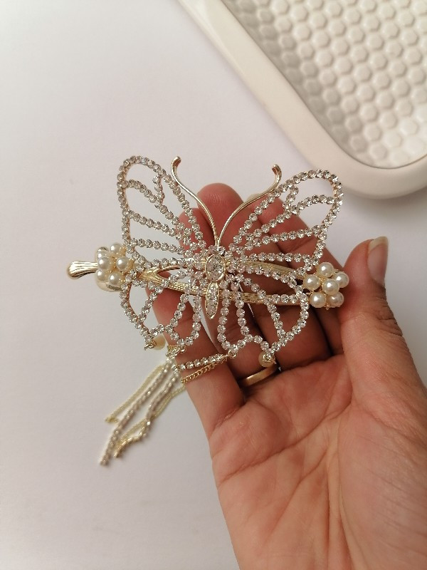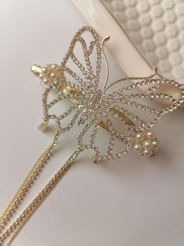 کلیپس چفتی پروانه مرواریدی آویز دار