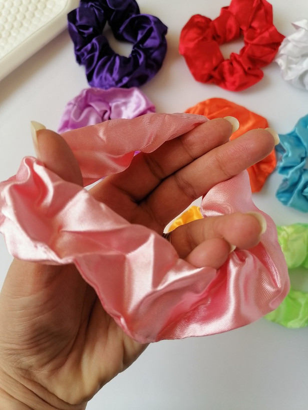 جنس رویه اسکرانچی از ساتن ساده هست، داخل اسکرانچی یه ریسه لامپی قرار داره که باطری میخوره و با یک دکمه که داخل اسکرانچی هست به سه صورت روشن و خاموش میشه