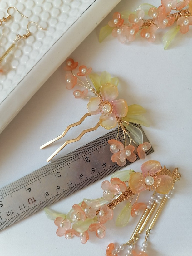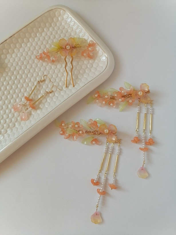 این کار به صورت ست هست و شامل دوگیره انبری آویزدار یک شانه شینیون و یک جفت گوشواره