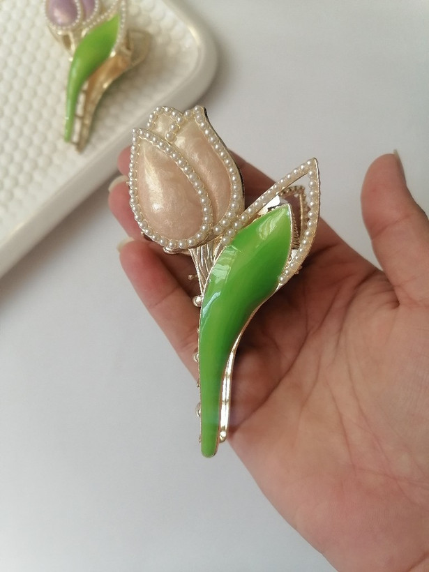 کلیپس لاله آبکاری خیلی خوبی داره و سایزش حدودا 10 سانت و مناسب موهای متوسط و کم حجمه
