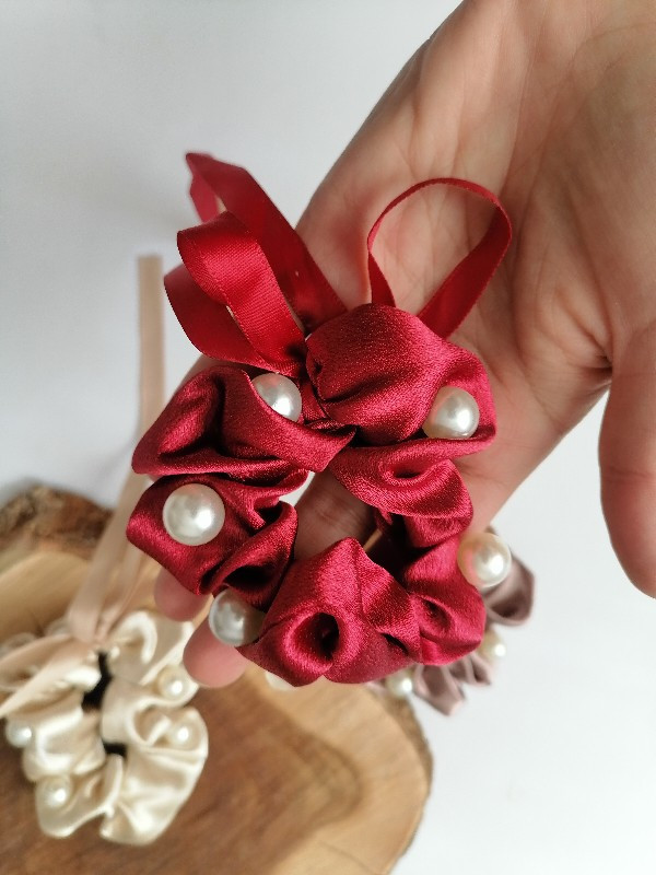 اسکرانچی ساتن مرواریدی اویزدار