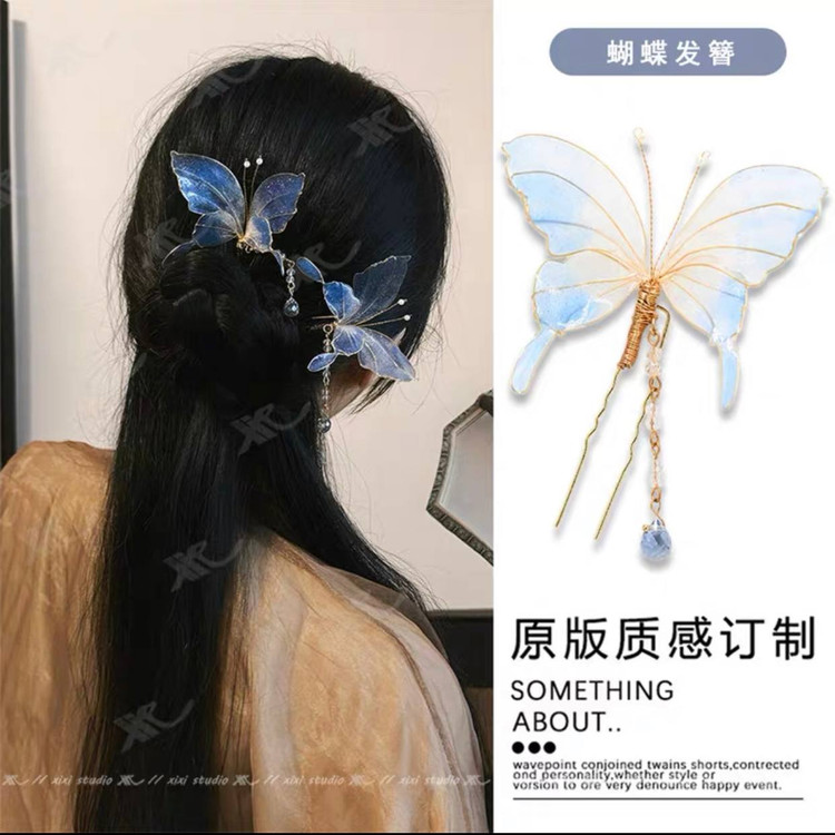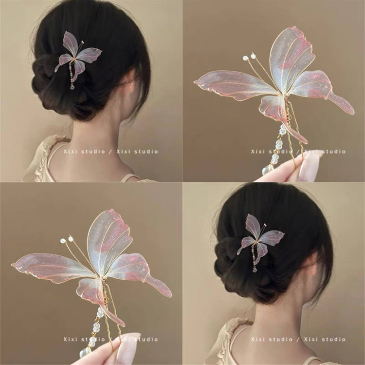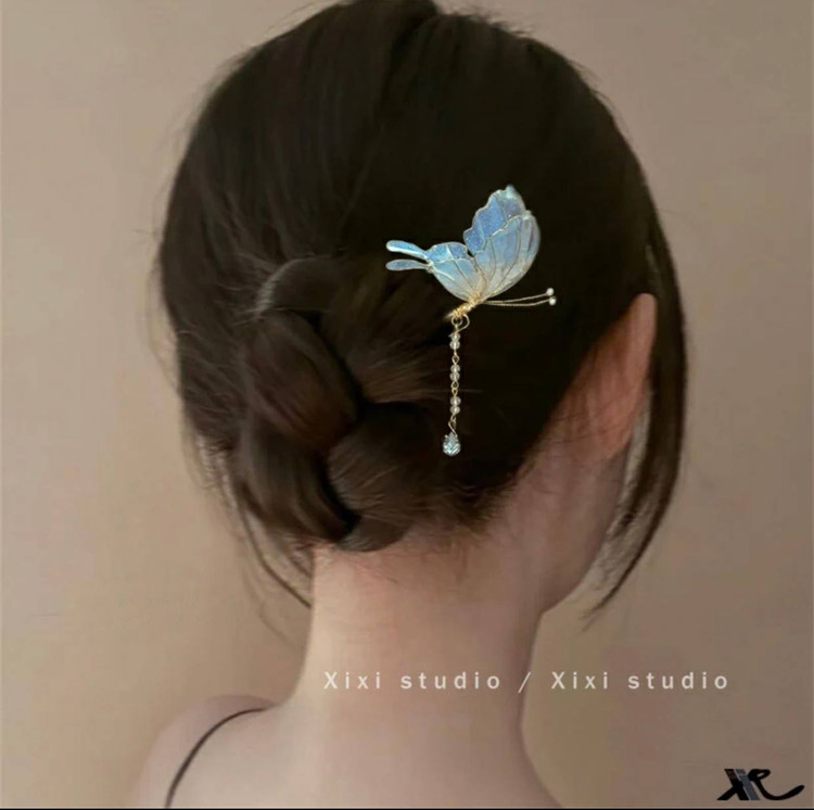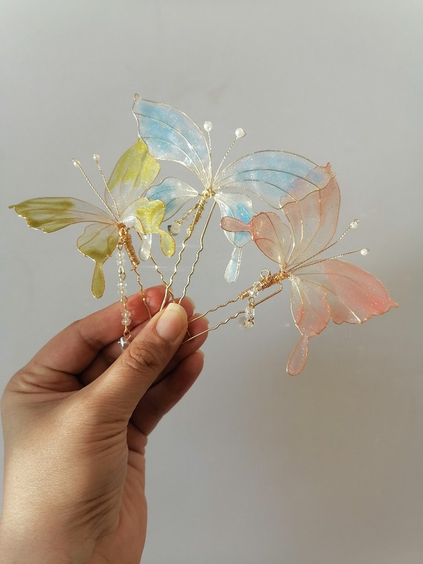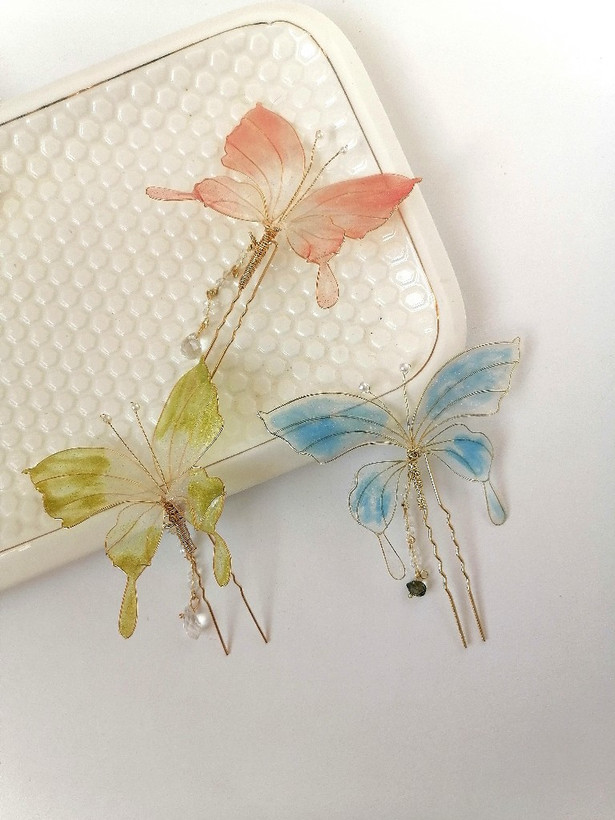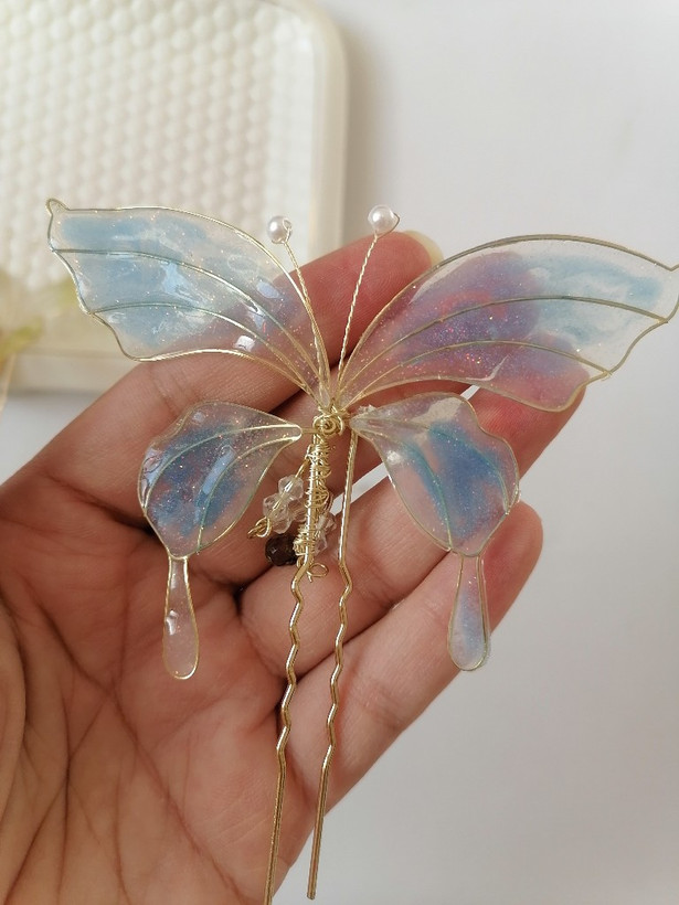 سنجاق شینیون پروانه شیشه ای کاری بسیار ظریف و خاصه ک هرجایی نمیبینید